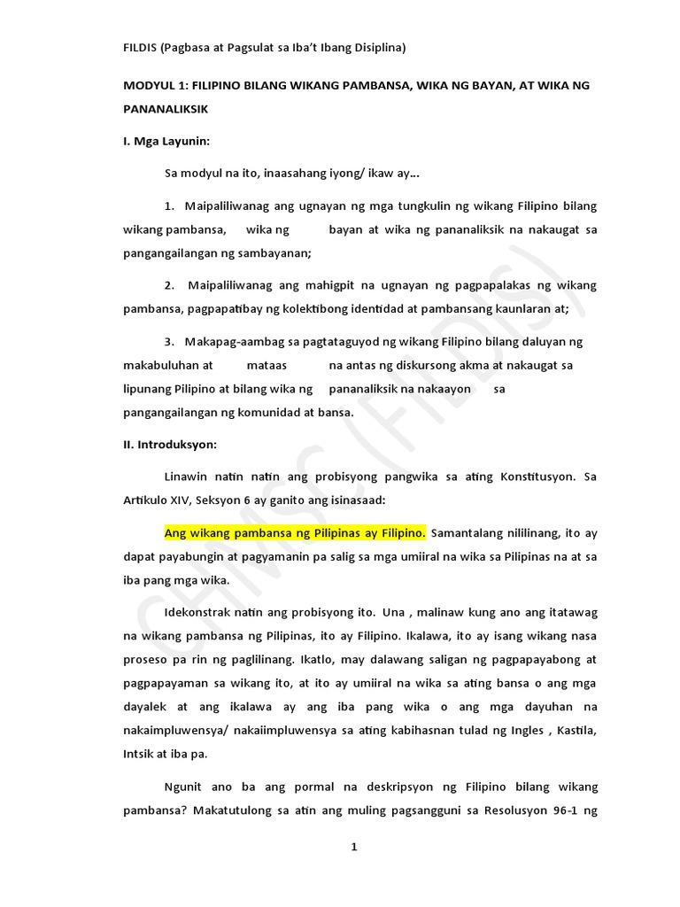 Nagkakaisa kaming tumitindig at nagpapahayag na dapat manatili at patuloy na paunlarin ang Wikang Filipino at Panitikan bilang mga batayang kurso sa General Education Curriculum sa kolehiyo. 2018-08-14 Ang isang batang matatas sa wikang Filipino ay angat sa karaniwan. 2020-09-22 Table of Contents WIKANG FILIPINO SA AGHAM PANLIPUNAN Batas at PolitikaWIKANG FILIPINO SA HUMANIDADES WIKANG FILIPINO SA AGHAM AT TEKNOLOHIYA WIKANG FILIPINO SA NEGOSYO AT INDUSTRIYA Ang wika ay kasama sa pagsulong ng teknolohiya at komunikasyon.