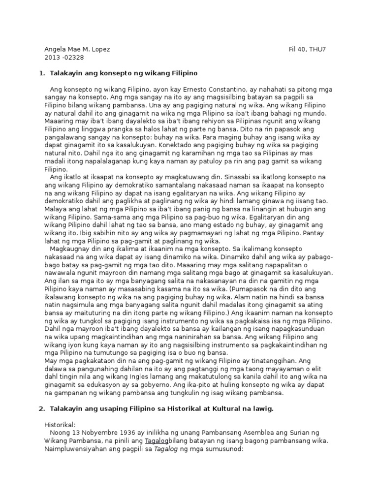 1 Talakayin Ang Konsepto Ng Wikang Filipino