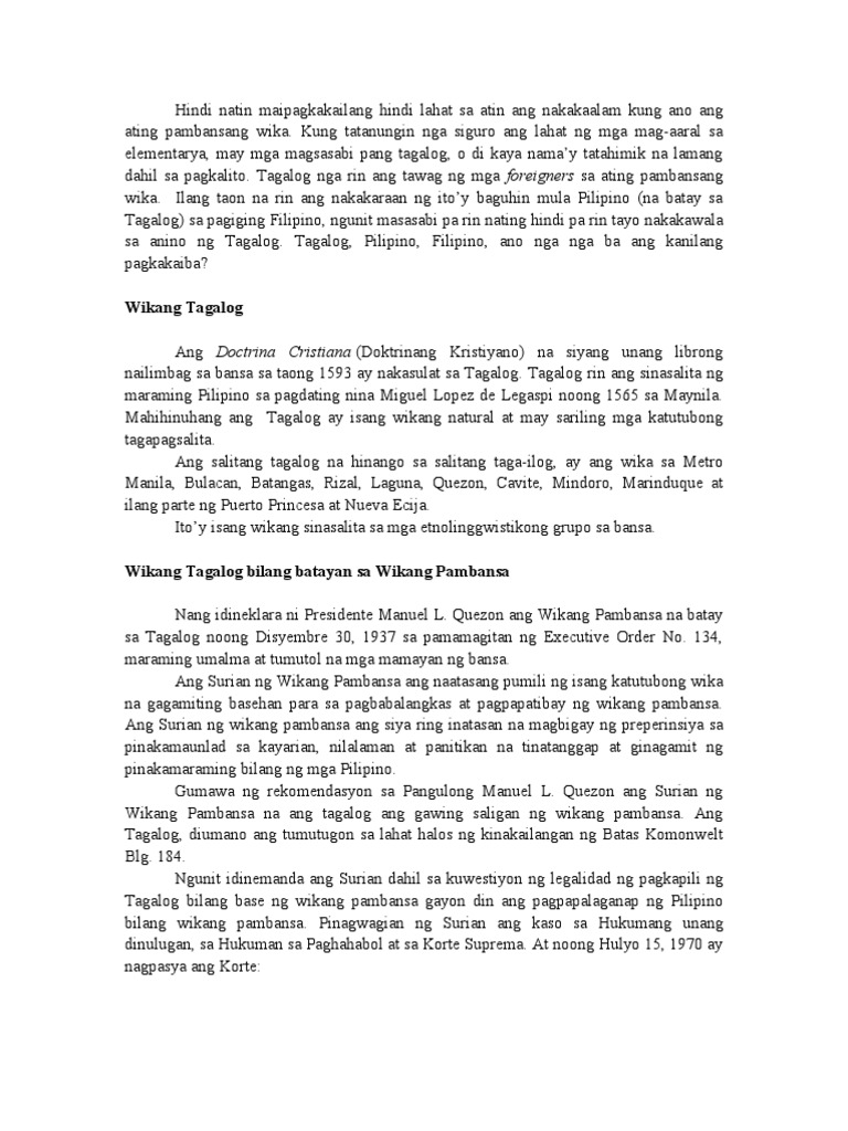 2020-09-14 bawat bansa ay may sariling wika naayon sa knilang pananalitasa ating bansang pilipinas tagalog ang ating sariling wika at itoy wikang pambansa sa kdahilang ang pilipinas ay sya lamang bansa na kayang maintindihan ang ibat ibang lingwahe ngunit pagdating sa ating sariling wika tayo ay lubos na nagkakaunawaan. Pinagtibay ng Kautusang Tagapagpaganap Blg. Ito ay may pinakamayamang talasalitaan.