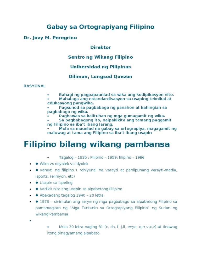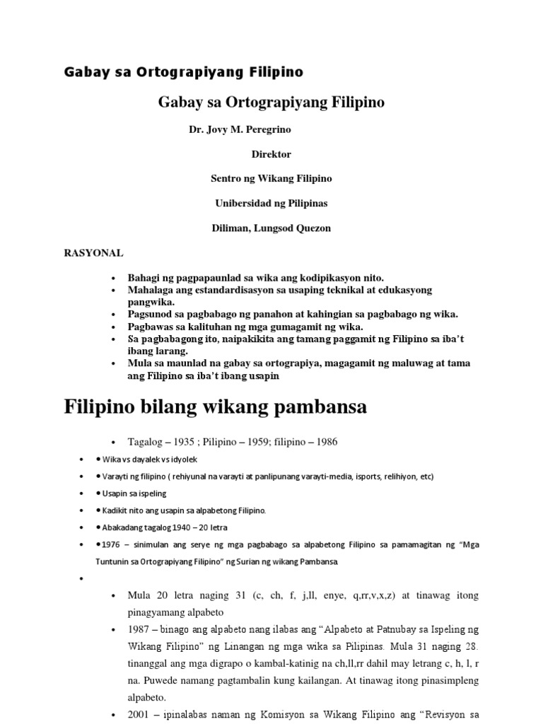 View Notes - 2009 GABAY SA ORTOGRAPIYA NG WIKANG FILIPINO from FILI 1016 at Politecnico di Torino. Sa mga nakalipas na taon sa pakikipagtulungan sa Kagawaran ng Edukasyon DepEd at mga. Panahon ng Katutubo 4.