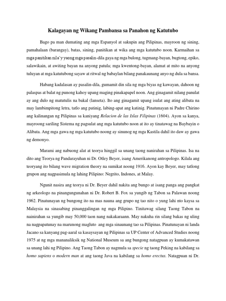 Panahon ng mga Katutubo 1Teorya ng Pandarayuhan Kilala rin ang teaoryang ito sa taguring wave migration theory na pinasikat ni Dr. 19082016 Ang pag-aaral at pagpili sa wikang pambansa ay naganap noong 1936. 92-1 na naglalahad ng Batayang Deskripsyon ng Filipino.