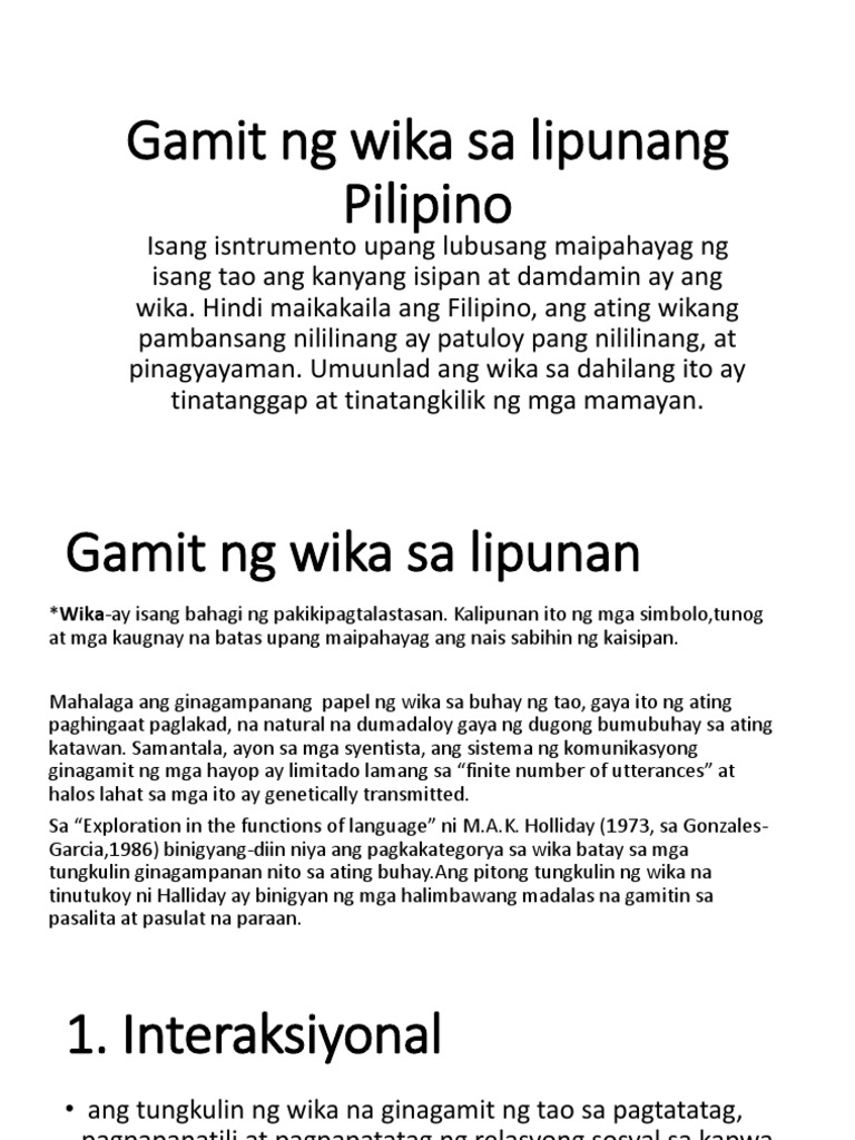 Mga Gamit Ng Wika Sa Lipunang Filipino