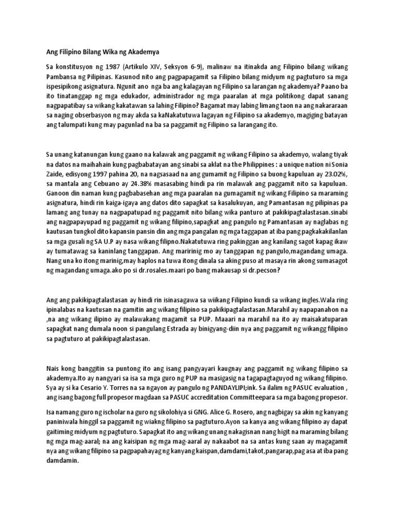 Bakit mahalaga ang wikang filipino sa pananaliksik. Barbaza is currently an Assistant Professor at the Department of Filipino and Philippine Literature in. Sapat na ba ang kakayahan mo magsalita ng Wikang Filipino. UPANG tumaas ang tingin ng mga mag-aaral sa wikang pambansa dapat gamitin ang Filipino sa pananaliksik-panlipunan ayon sa mga guro sa isang talakayan sa Pamantasang De La Salle noong ika-27 ng Nobyembre.