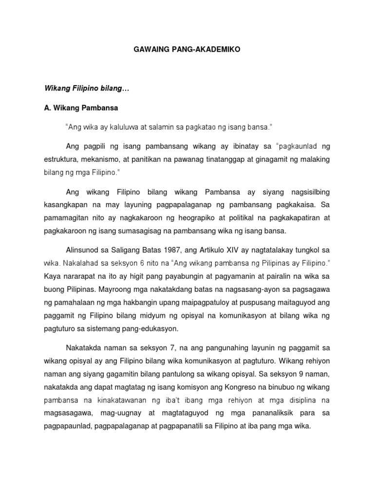 Ang Wikang Filipino Sa Akademya
