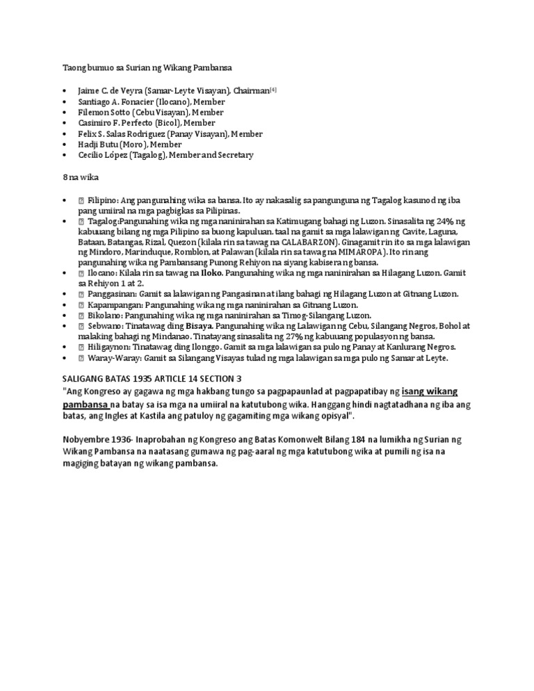 Ang Kasaysayan At Pagkabuo Ng Wikang Pambansa
