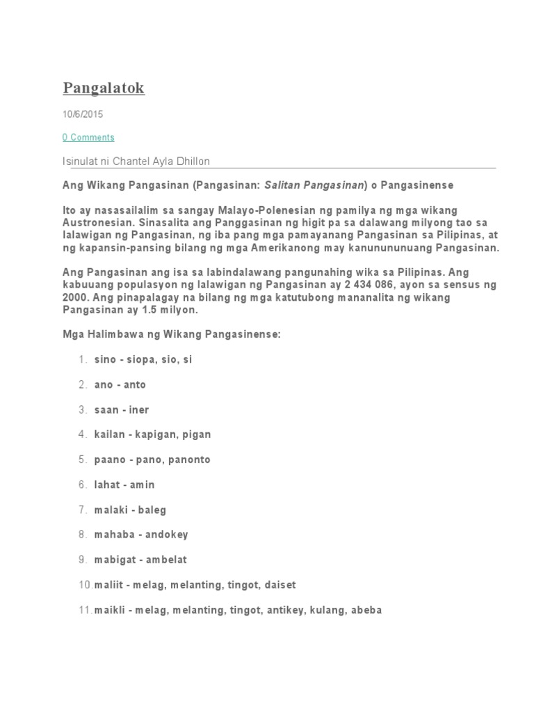 Halimbawa ng wikang pangasinense. Dahil sa pagiging isang arikipelago maraming mga isla na may sarili nilang kultura at wika. Mga salitang pangasinense at kahulugan sa tagalog 2021. Ryden Callueng Nelmida Michael Thomas M.