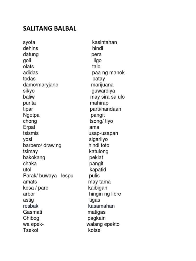Salitang Balbal Salitang Hiram