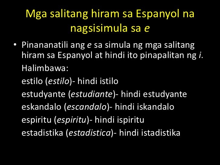 Sa mga salitang hiram na espaol na may e panatihin ange.
