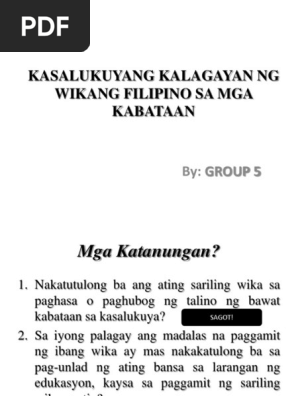 Kasalukuyang Kalagayan Ng Wikang Filipino Sa Mga Kabataan
