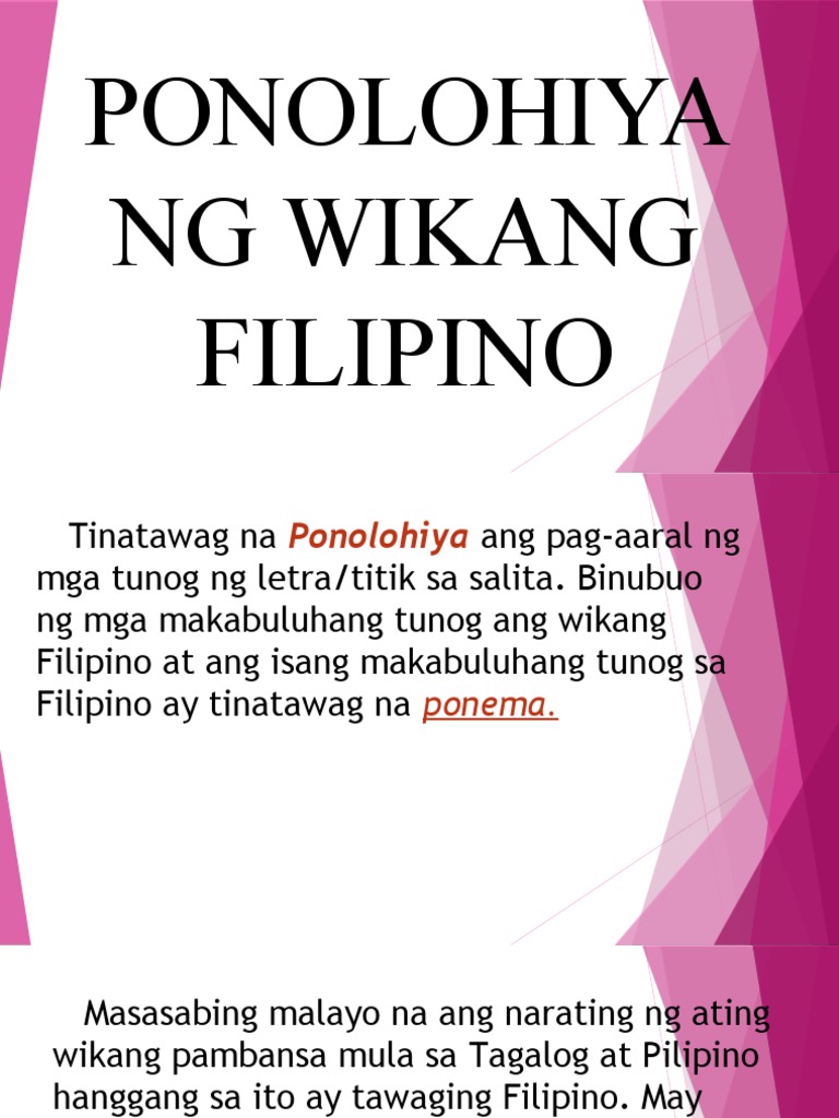 Group 7Ang pag-aaral sa mahahalagang tunog ng wika na nagbibigay kahulugan sa pagbigkas ng salita o nagbibigay ng ng pagbabago sa kahulugan ng mga salita ay tinatawag na PONOLOHIYA O PALATUNUGAN. Magandang buhay maligayang panonood dito sa Senadorng Filipino YouTube channel. Ang impit na tunog kaya lahat ang bilang ng ponema sa Filipino ay 21.