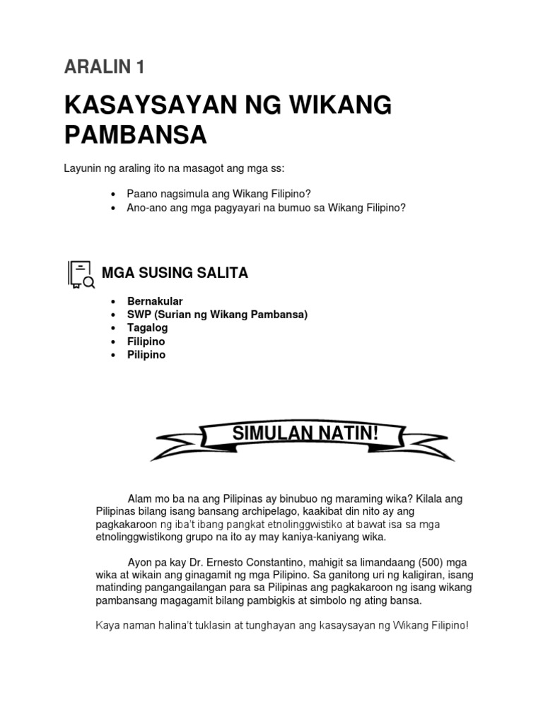 Kasaysayan At Pagkabuo Ng Wikang Pambansa