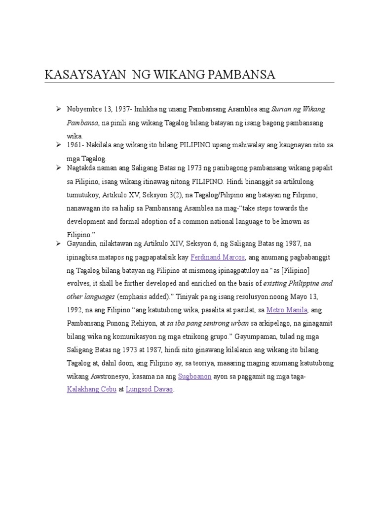 Kasaysayan ng wikang pambansa kahulugan. Kahalagahan ng Wikang Pambansa. 31102014 KASAYSAYAN NG WIKANG PAMBANSA TAGALOG PILIPINO FILIPINO WIKA nag-uugnay ng sambayanan. Ang LWUA ay sumusuporta sa Buwan ng Wika ngayong Agosto 2020.