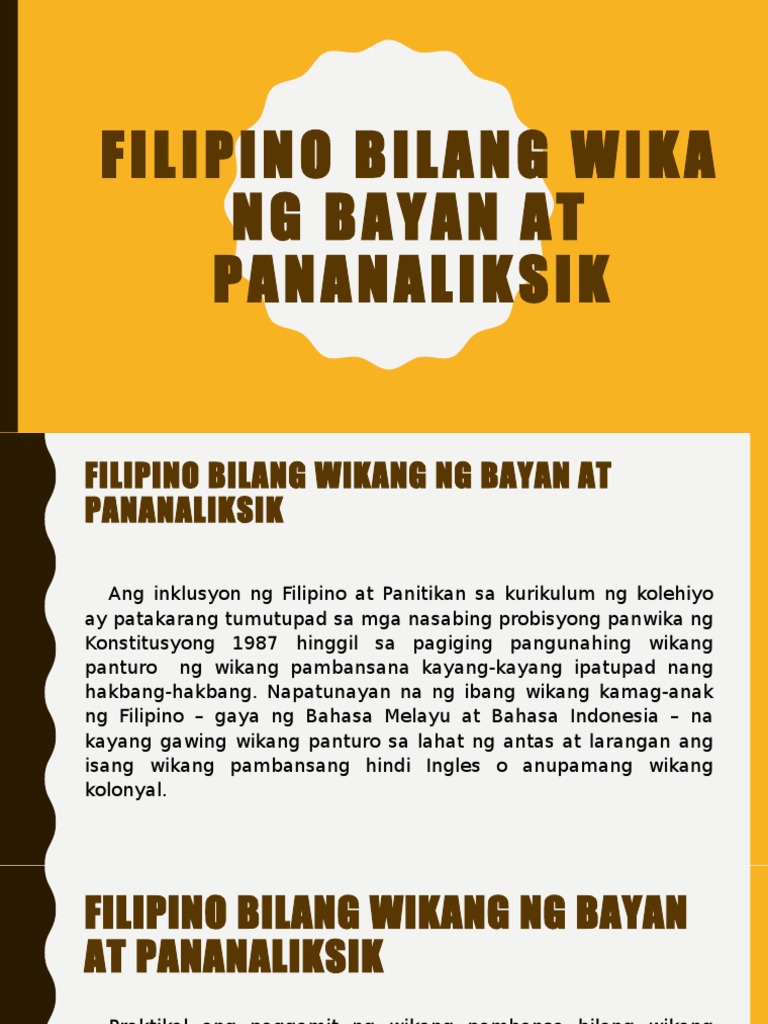 Ano Ang Filipino Bilang Wika Ng Bayan