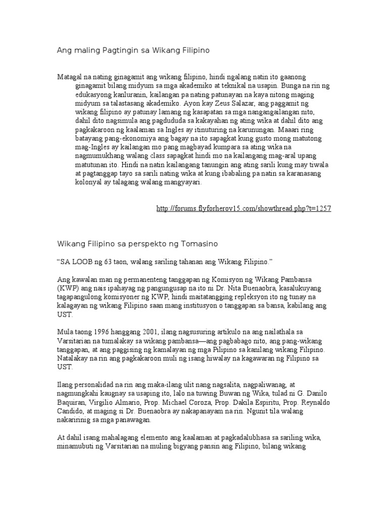 Ang Maling Pagtingin Sa Wikang Filipino