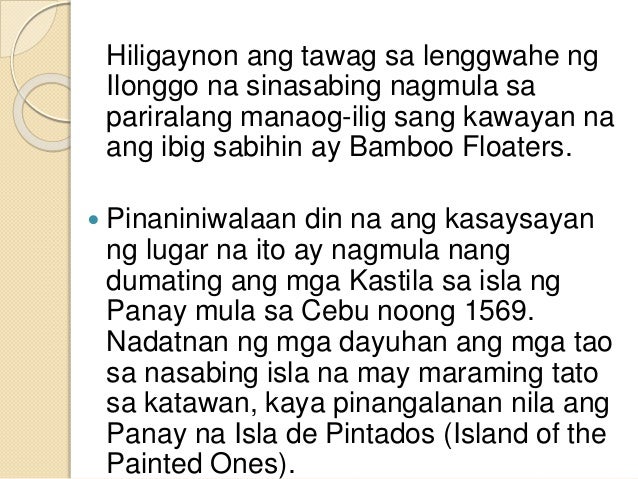 Kung tutuusin ang Ilonggo ay isang pangkat ng ethnolinggwistiko na tumutukoy sa mga mamamayan ng Iloilo at gayundin ang kulturang Hiligaynon. Pero may nakasulat sa bibliya na tungkol sa. 2016-08-19 Ito ang madalas na tanong ng karamihan sa kasaysayan ng Pilipinas mahalagang malaman kung saan ito nagmula kung paano ito nagsimula at kung ano na ito sa kasalukuyan.